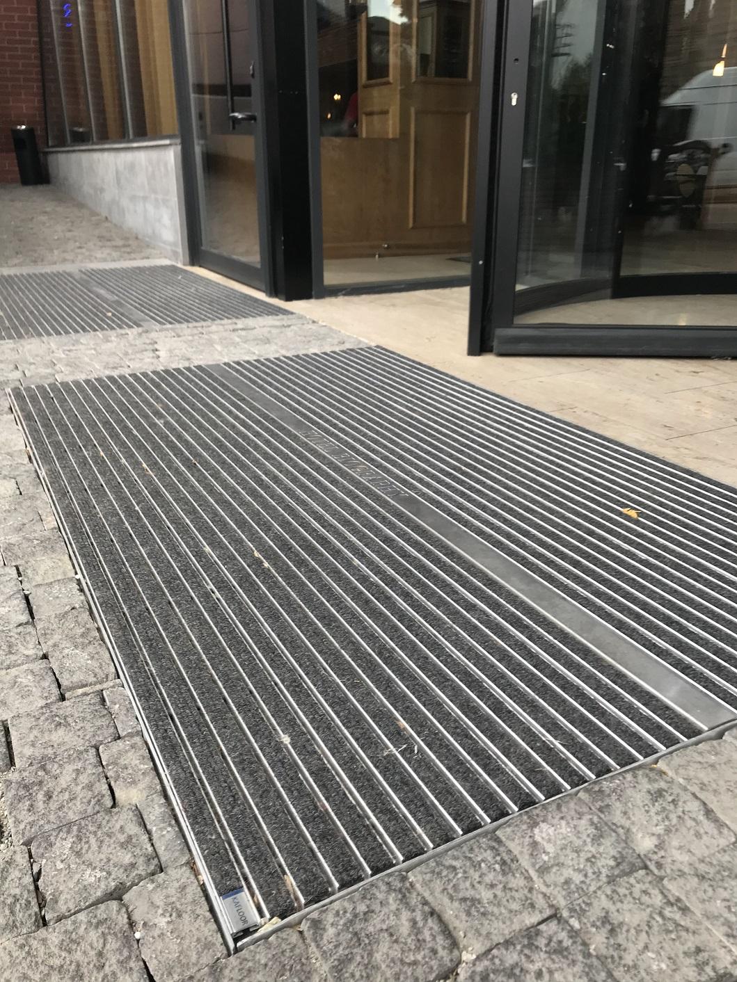 ცენტრალურ შესასვლელში დაიგო ფეხსაწმენდი სისტემა Emco Inox.