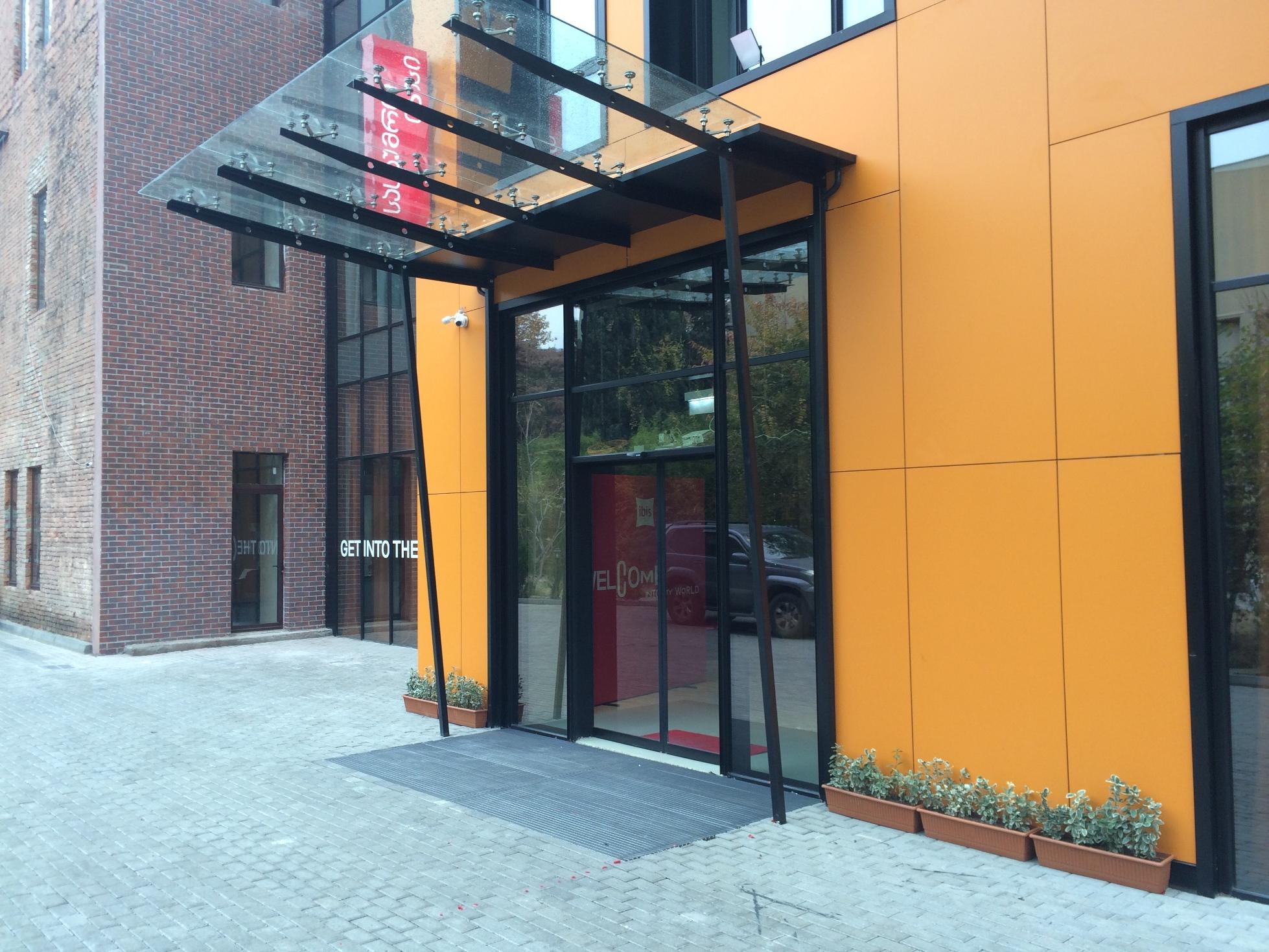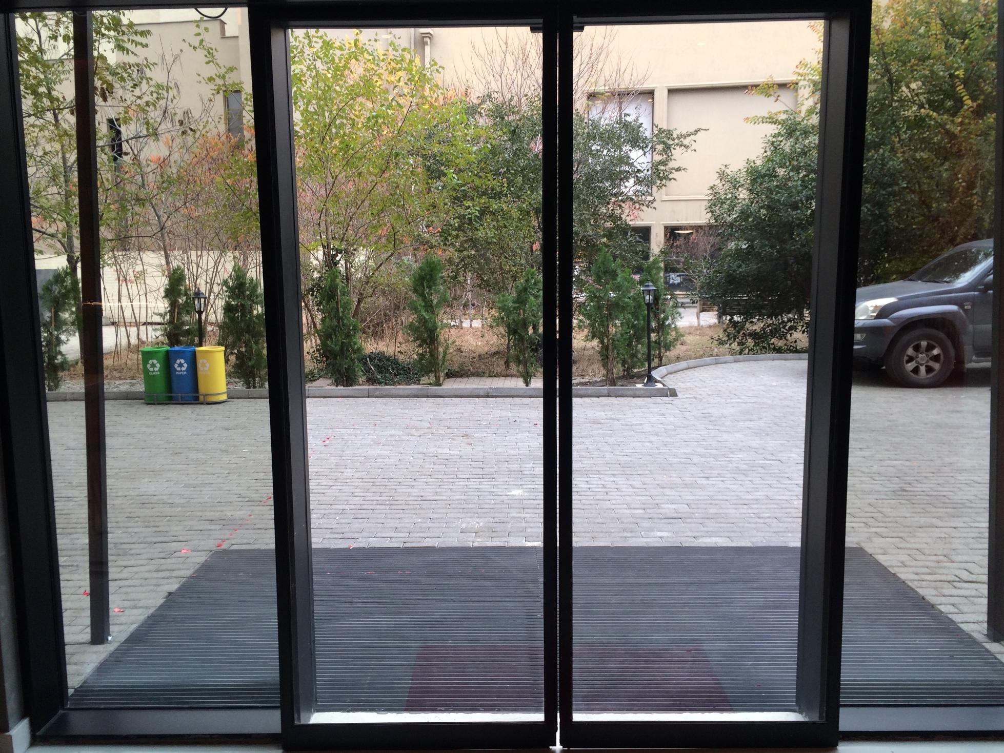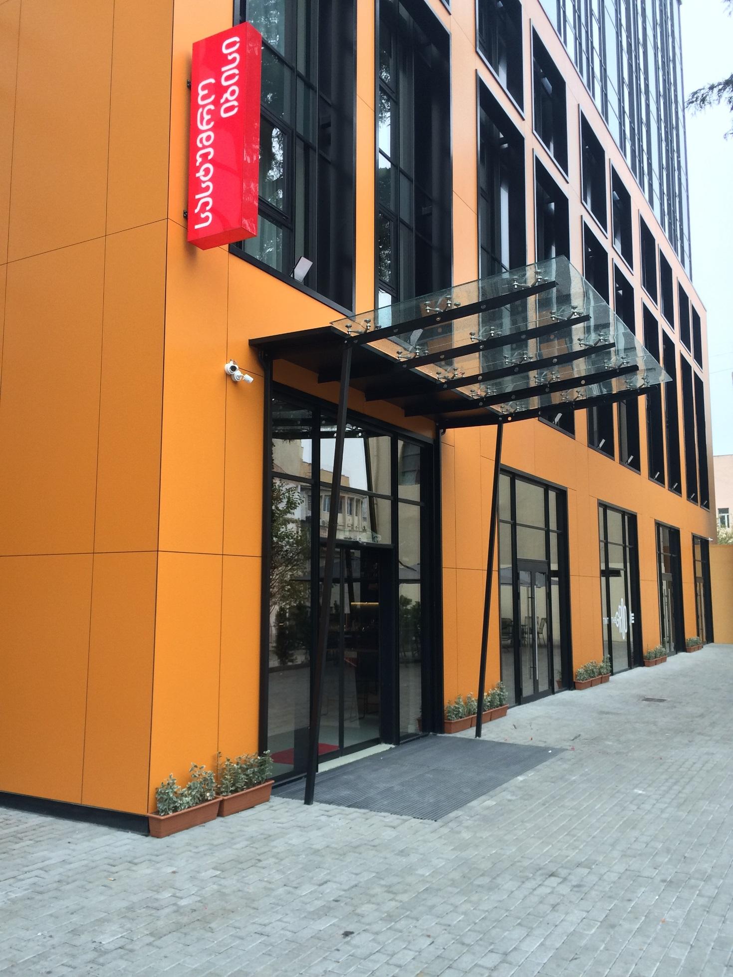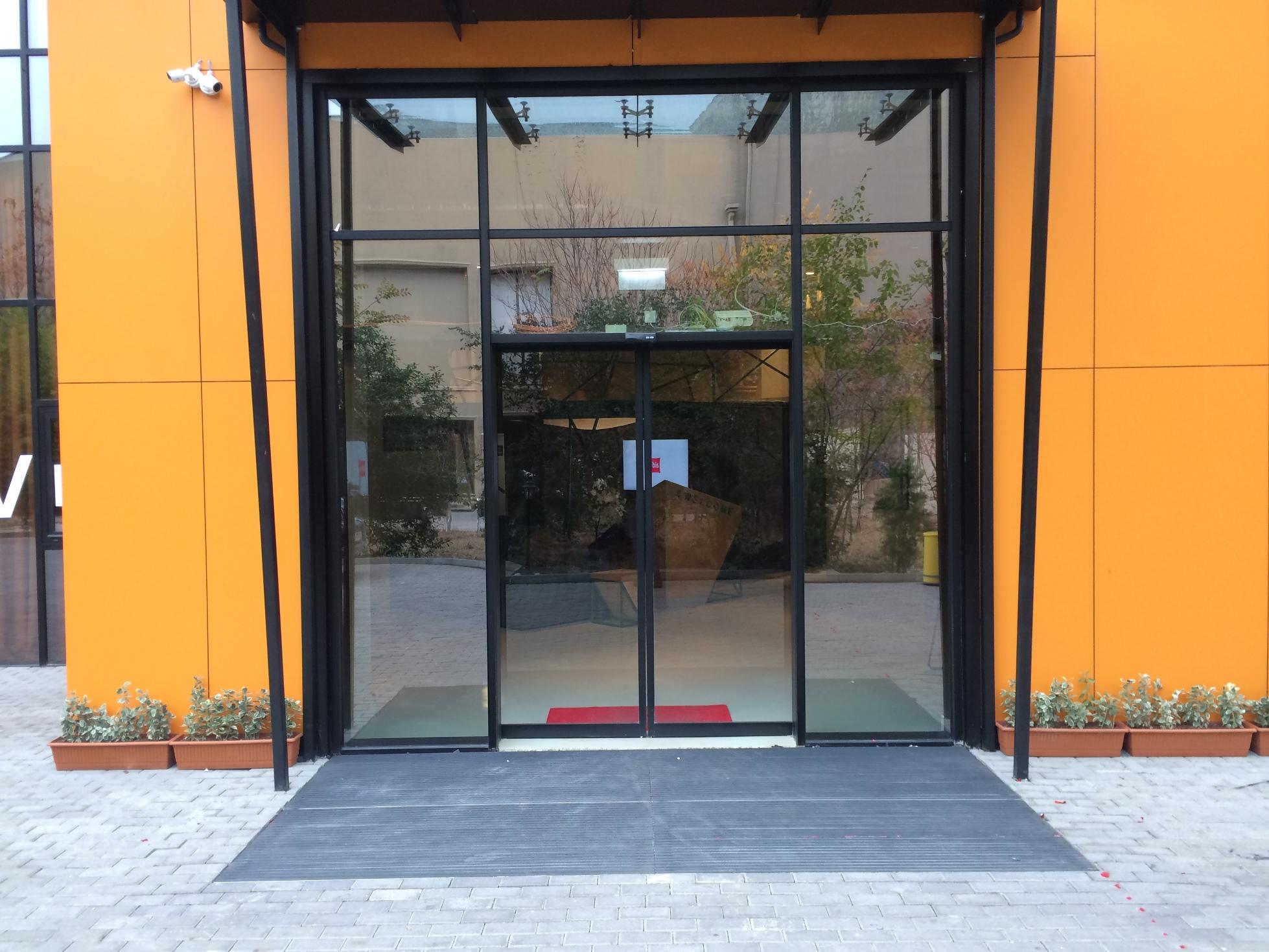 ცენტრალურ შესასვლელში დაიგო ლუმინის ცხაურები რეზინის ჩანართებით EMCO Diplomat 522G.