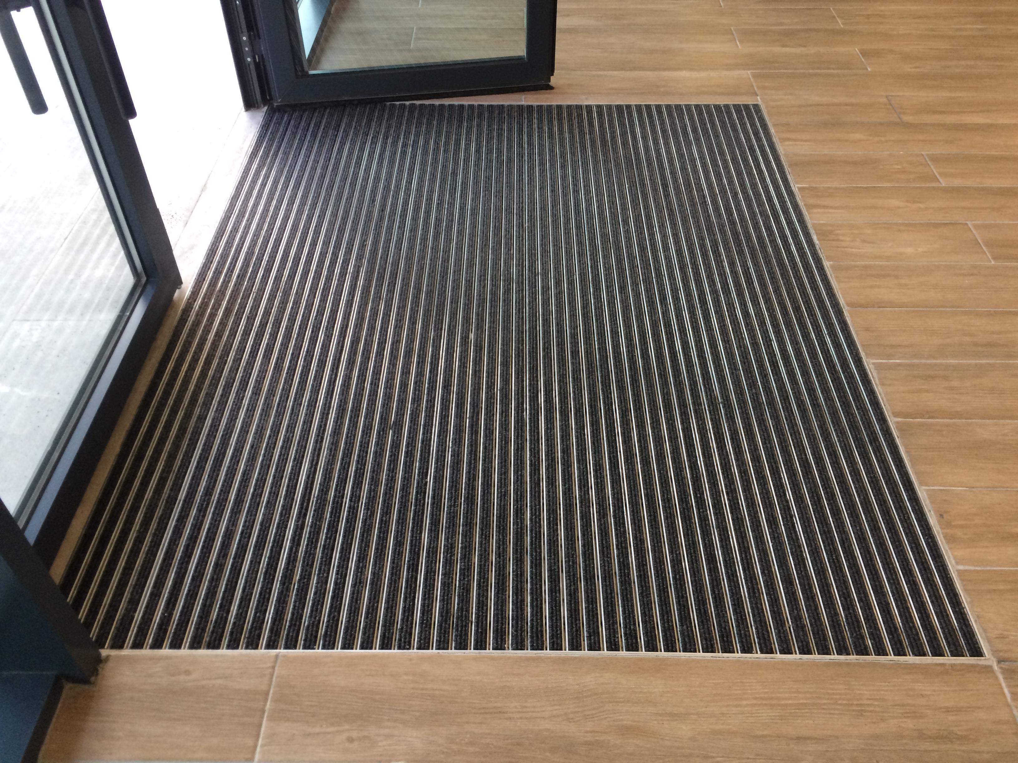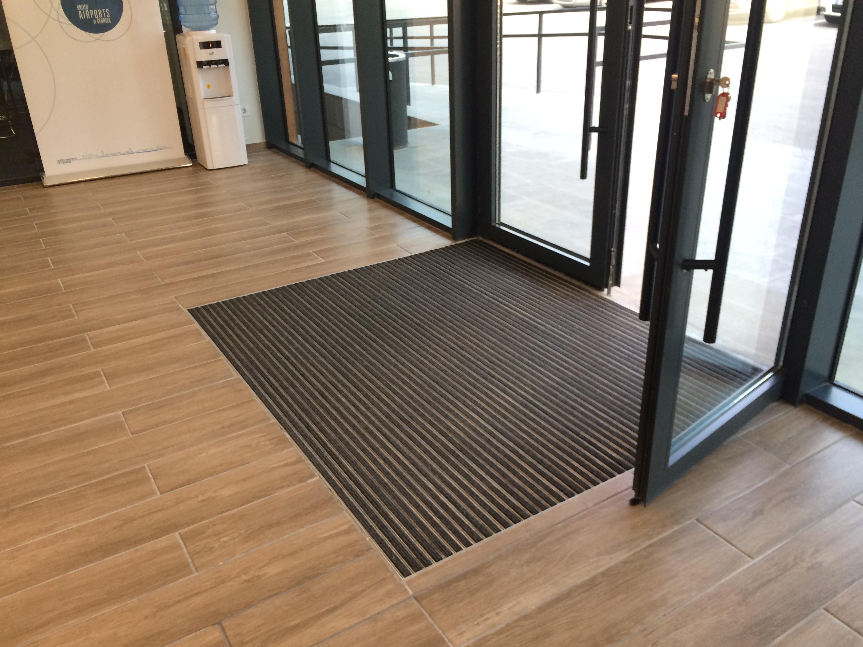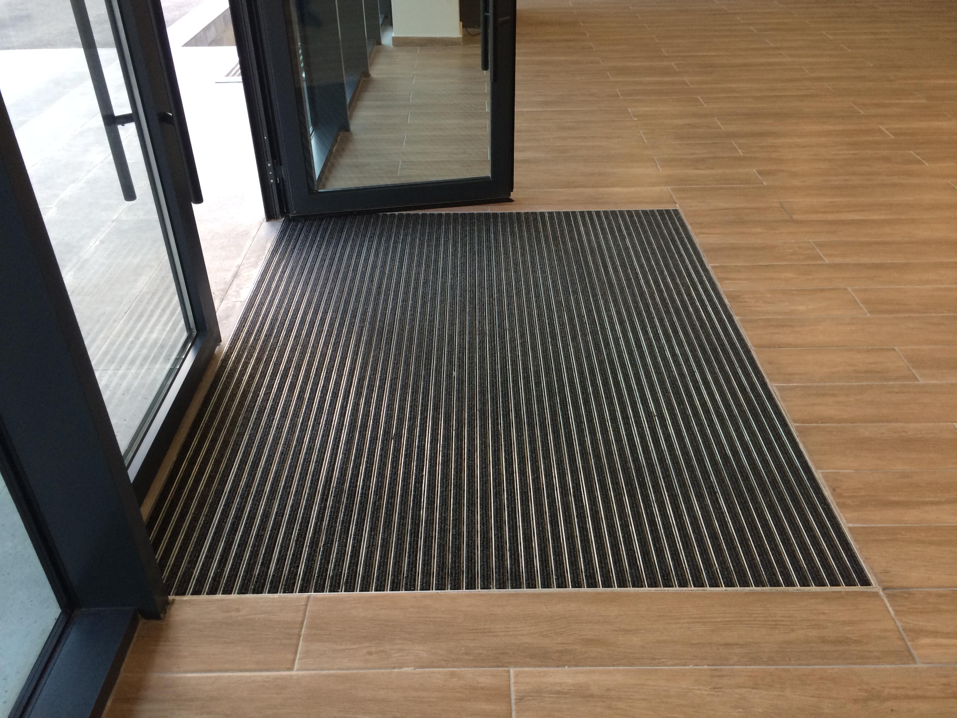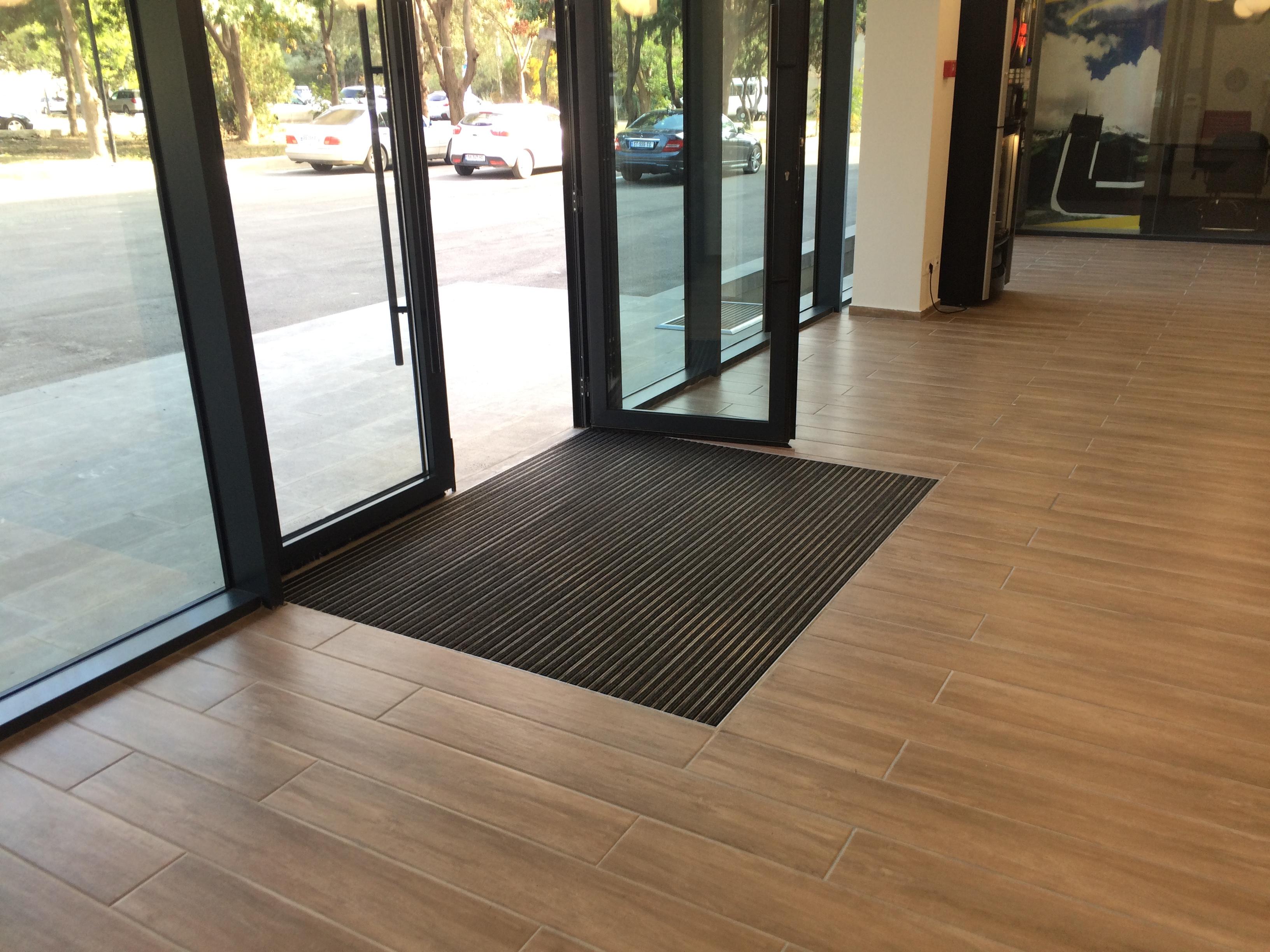 ცენტრალურ შესასვლელში დაგებულია ჭუჭყდამცავი ფეხსაწმენდი სიტემა Emco Diplomat 522R